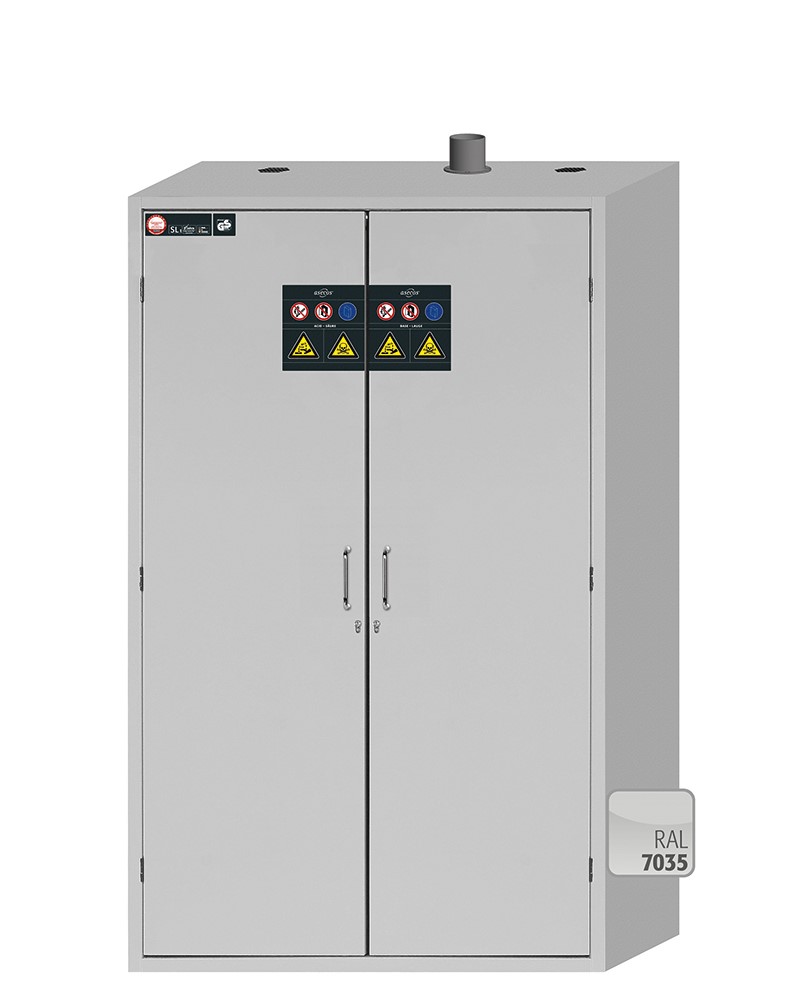 Todo laboratorio en el que habitualmente se permanece en contacto diario con productos químicos debe tener por seguridad, recogido en la legislación actual, un lugar de almacenamiento obligatorio según Norma. El objetivo de un Armario de seguridad es la protección del personal, productos e instalaciones. Disponemos de un importante stock de armarios para entrega inmediata Inflamables, Ácidos/bases y Fitosanitarios, con cumplimiento de normativas EN 14470-1 (Tipo 90 minutos de resistencia al fuego), conformidad CE, vehículos apropiados (tamaño, capacidad, potencia y puerta trasera elevadora) para transporte y colocación en lugar accesible con transpaletas, para pisos montacargas del cliente. Conductos de aire integrados listos p/conectar al sistema de extracción, no incluido en todos los modelos. Conexión al exterior, ventilador o salida directa chimenea, no incluida.